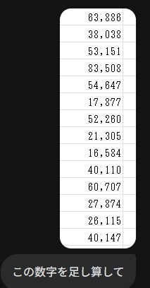単純に足すだけなら、生成AIを使い「次の数字を合計して」で読み上げればいいですし、読み上げた数字をエクセルで使えるようにしてもらうこともできます。