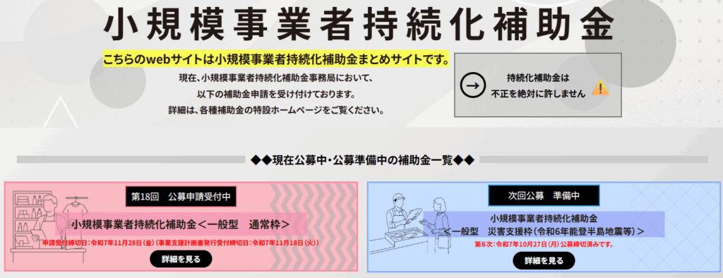 現在、小規模事業者持続化補助金第18回の公募申請を受付中です。