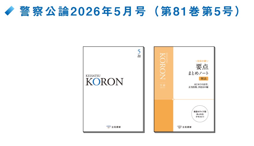 立花書房が発行する、警察公論の公式サイトです。警察官の昇任試験対策から実務能力向上をサポートするコンテンツをはじめ、新法・法改正の解説など、日々の職務執行に活用できる記事が満載です!