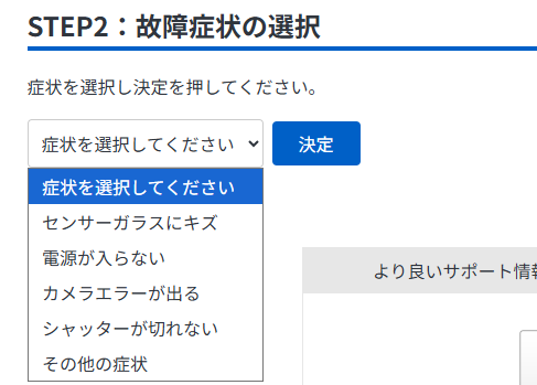 プルダウンメニューに「カメラエラー」とあるので、一般的な症状なのかもしれません。