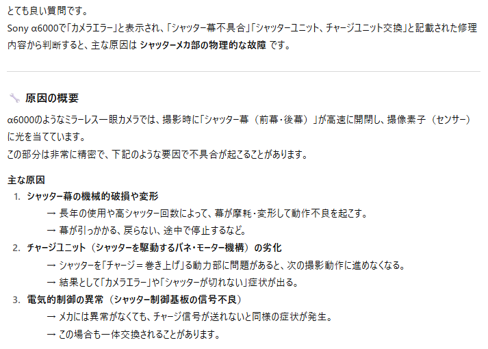 ちなみに請求書には、修理内容として、「シャッターユニット、チャージユニットの交換」と書いてあります。