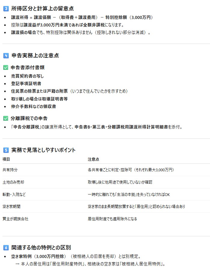 3000万円特別控除が使えそうですが、適用にあたり注意すべき点を教えて。