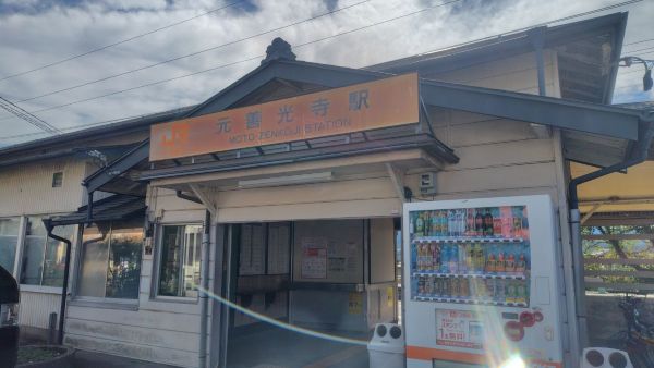 元善光寺までは、駅を降りた先にある県道を左に歩いて約10分。